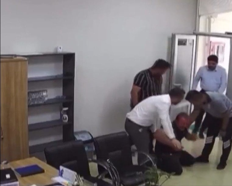 Üzerinde özel güvenlik kıyafeti bulunan başka bir şahıs da Mercimek’e müdahale ederek odadan çıkarttı.