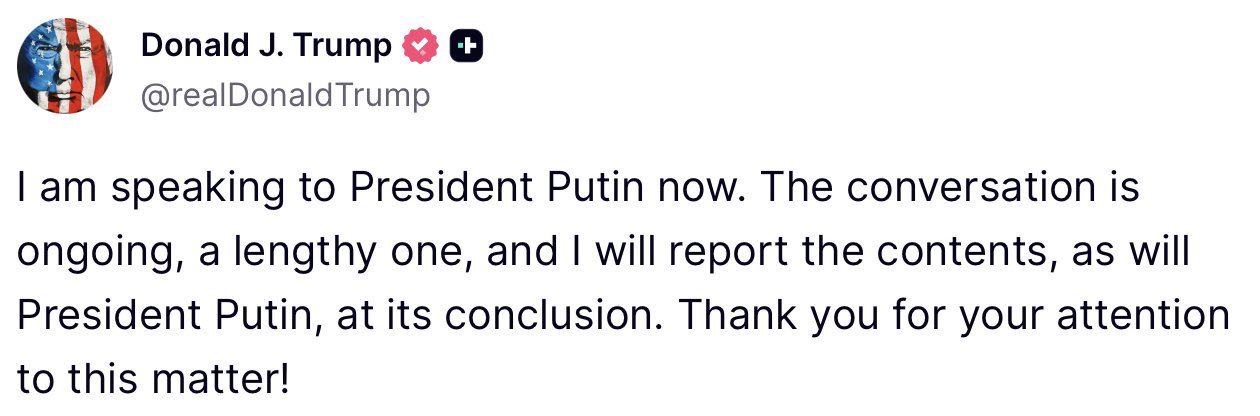 Konuyla ilgili sosyal medya hesabından açıklamalarda bulunan ABD Başkanı Donald Trump, “Şu anda Başkan Putin ile görüşüyorum. Görüşme devam ediyor, uzun bir görüşme ve görüşmenin içeriğini, Başkan Putin’in de yapacağı gibi, sonunda aktaracağım.” ifadelerini kullandı.